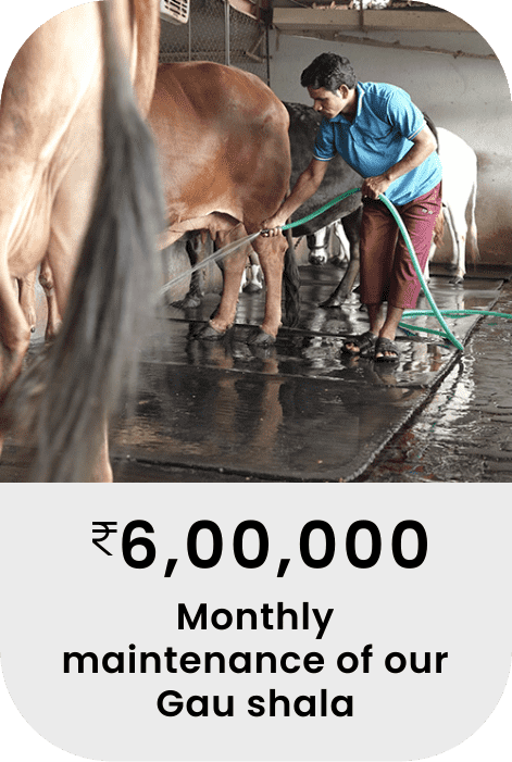 Gau Seva is considered one of the most revered services. Join us in our service for this humble being. Offer seva towards feeding the sacred cows and receive eternal blessings from Lord Krishna.